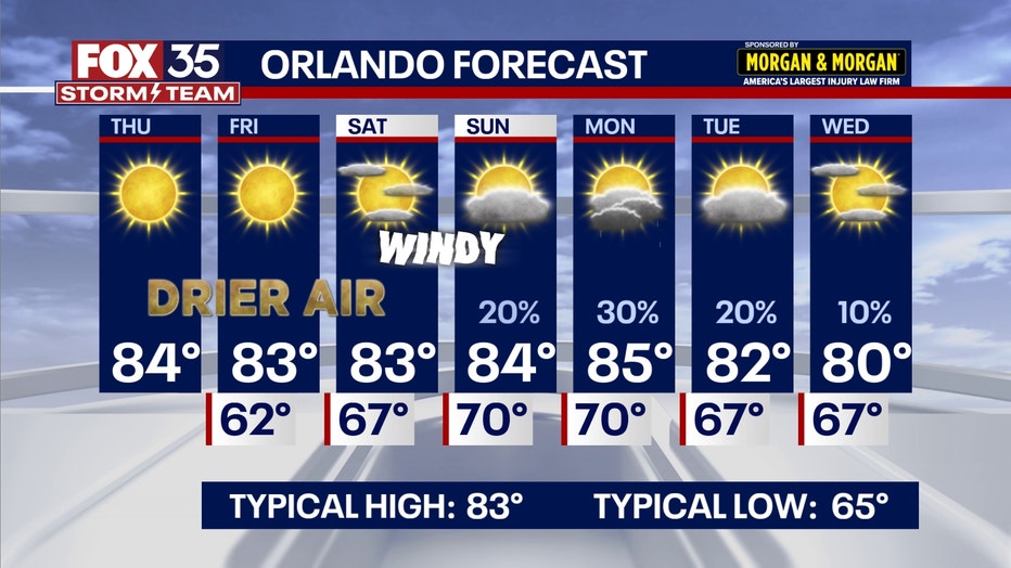 ORLANDO, Fla. - Highs jumped back into the mid-80s for inland areas on Thursday.