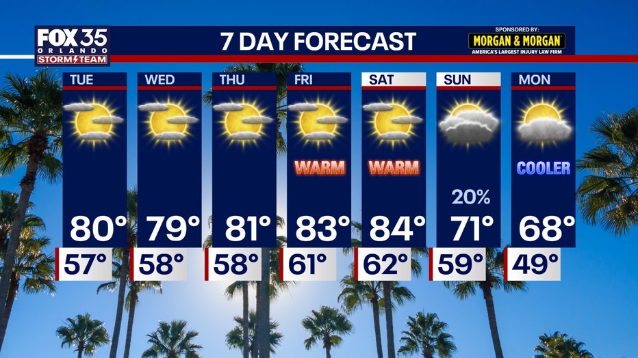 ORLANDO, Fla. - Highs are expected to climb into the low to mid-80s by the weekend, with Saturday shaping up as the warmest day.