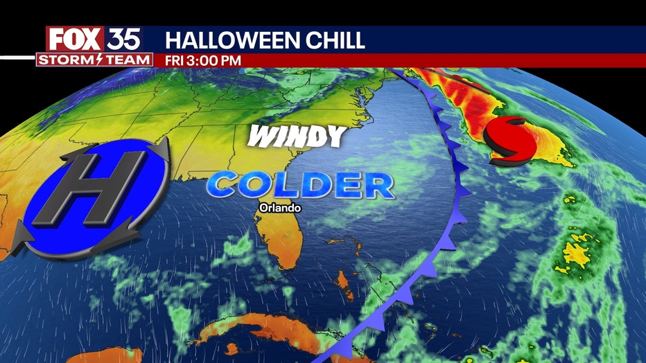 This will set the stage for plummeting temperatures and overnight lows into the 40s for part of Halloween weekend in Orlando, and afternoon highs in the 60s and 70s.