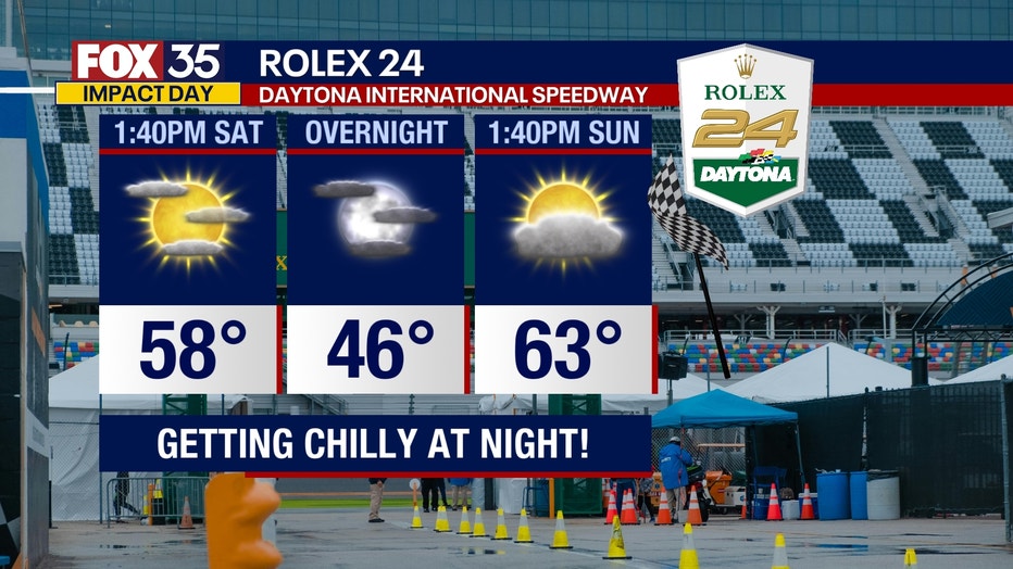 Despite the chill, the weather is expected to be good for the Rolex 24 event and at Orlando-area theme parks.