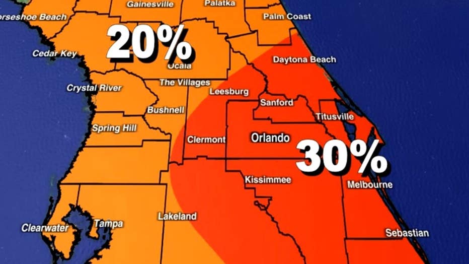 The FOX 35 Storm Team is monitoring an area of showers and thunderstorms in Eastern Carribean, with a chance to impact Florida. In the next two days this broad area could gain subtropical or tropical characteristics.