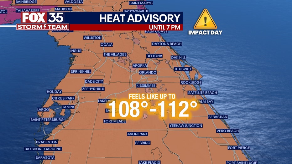 Main weather concerns: Friday has been declared a FOX 35 Weather Impact Day as heat and high humidity remains the weather headline.