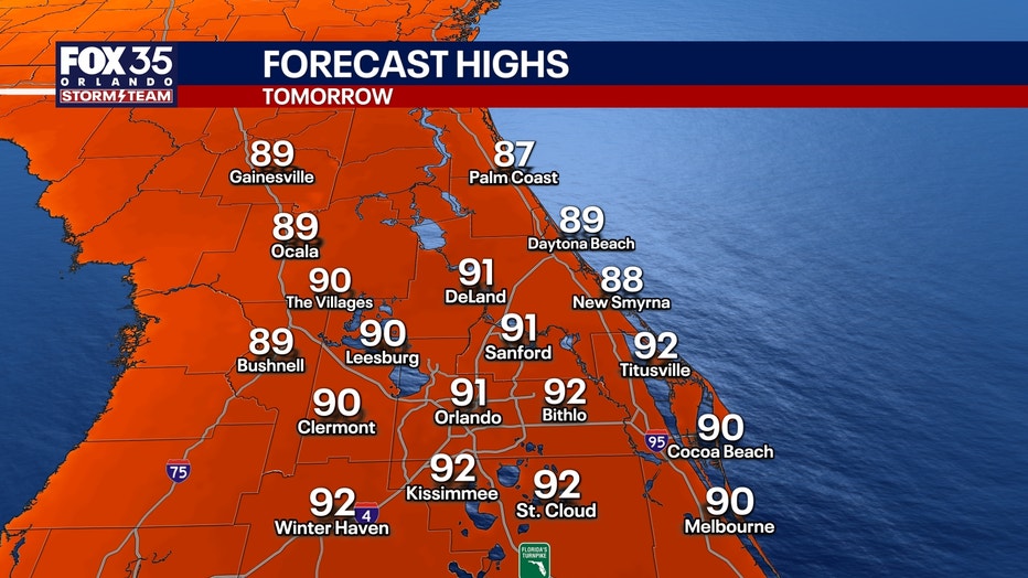 We'll heat up quickly and in a big way for this afternoon, as highs soar into the upper 80s and low 90s. Plan for a high of 91° in Orlando, which is well above our average high of 86°.