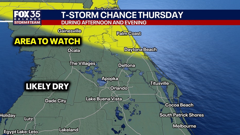 Isolated to scattered showers and a few storms will be possible tomorrow, mainly for areas northeast of Orlando. While we need the rain, Thursday's chances will be relatively low at 30%.