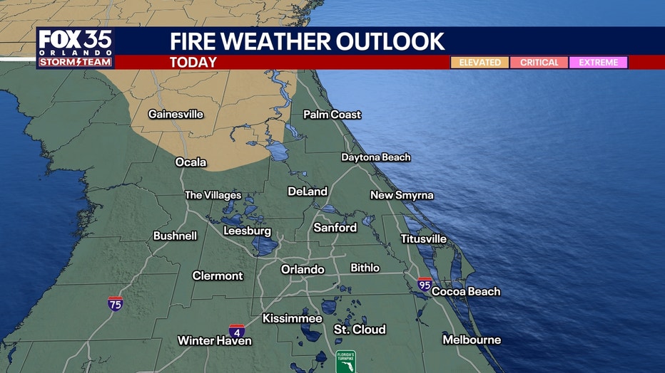 It will be a generally dry day too, with a mix of sunshine and clouds. With the drier air anticipated for today, the ongoing drought, and a light breeze, there is an increased fire weather risk for areas north of Orlando.