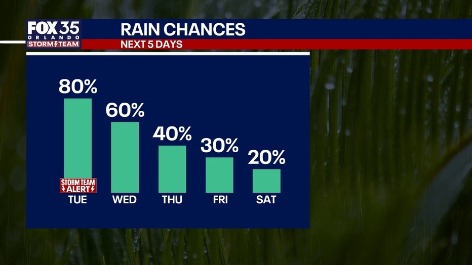 Rain chances increase for the start of the workweek. FOX 35 Storm Team meteorologist Brooks Garner is tracking how long the rain will stick around.