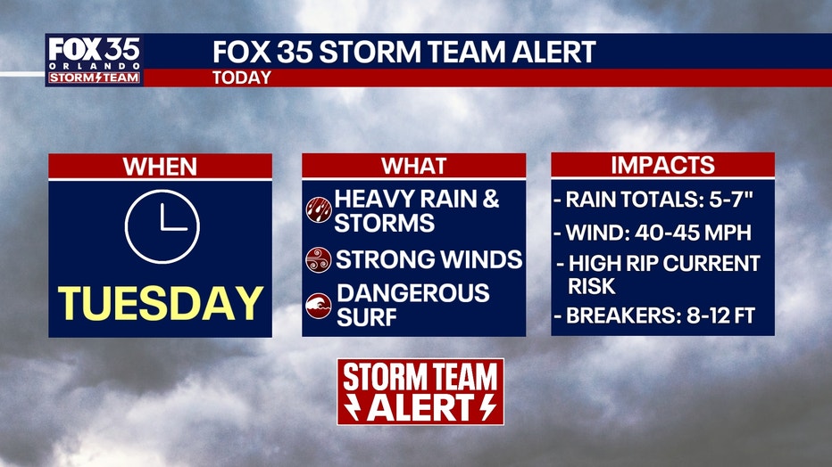 A strong system will stall over Central Florida, bringing a very wet Tuesday morning commute, followed by periods of heavy rain and thunderstorms through the day.