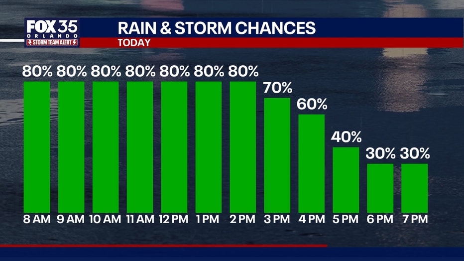 ORLANDO, Fla. - Steady rain and a few thunderstorms will be possible throughout today.