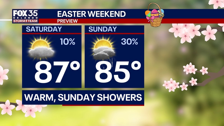 For Easter Sunday, the data points to a dry morning for Easter egg hunting plans. However, building moisture out ahead of a cold front next week is set to bring the chance of Sunday afternoon isolated scattered showers and a few storms.
