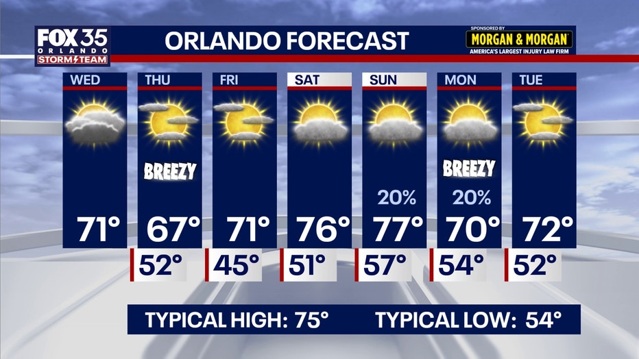 Temperatures will warm up a bit Wednesday, but the weather will remain cool for the rest of the week. FOX 35 Storm Team meteorologist Brooks Garner takes a look at the forecast.