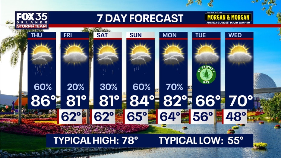 Orlando weather: Cold front brings rain, seasonable temps for St. Patrick's Day