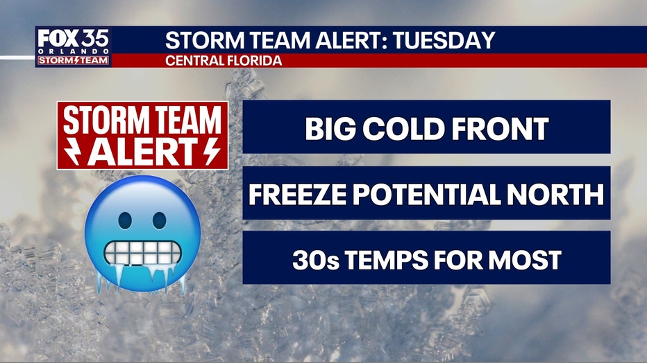 Freeze Warnings possible for northern counties Tuesday morning next week (Ocala, Gainesville, Palm Coast, etc).