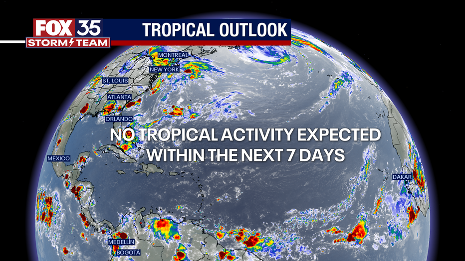 Tracking the tropics: things remain quiet for now. No tropical activity is expected within the next 2 to 7 days. If anything changes, the FOX 35 Storm Team will keep you updated.