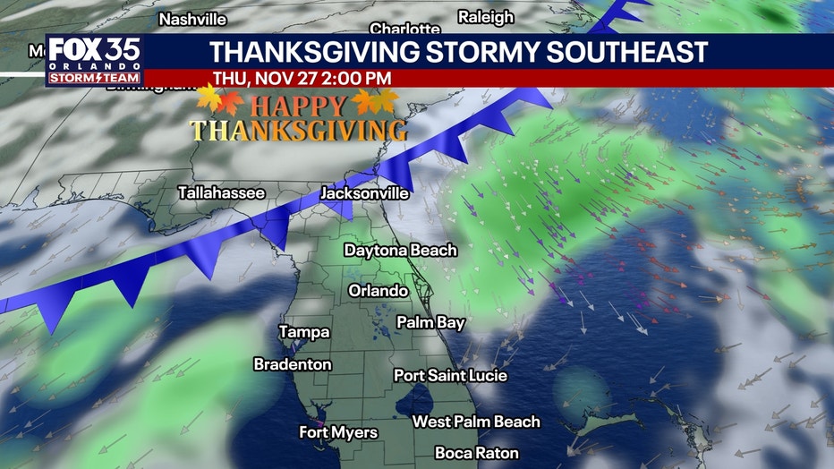 Our attention then turns to a cold front which is expected to arrive on Thanksgiving Day. This could bring a few showers, but chances aren't looking impressive at the moment.