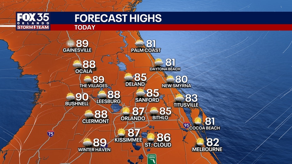 The fog this morning looks to be confined mainly to Seminole, Orange, southern Volusia, and northern Osceola counties. This will gradually clear and lift by 8 or 9 a.m.