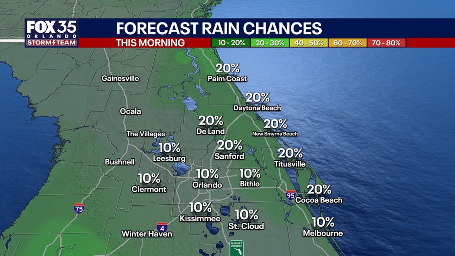 ORLANDO, Fla. - Patchy fog and coastal showers are taking shape this morning across Central Florida.