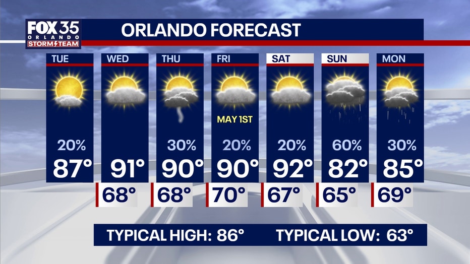 Heat builds into Central Florida this week as highs soar into the low 90s, even into the start of the weekend.