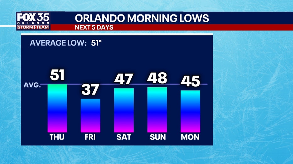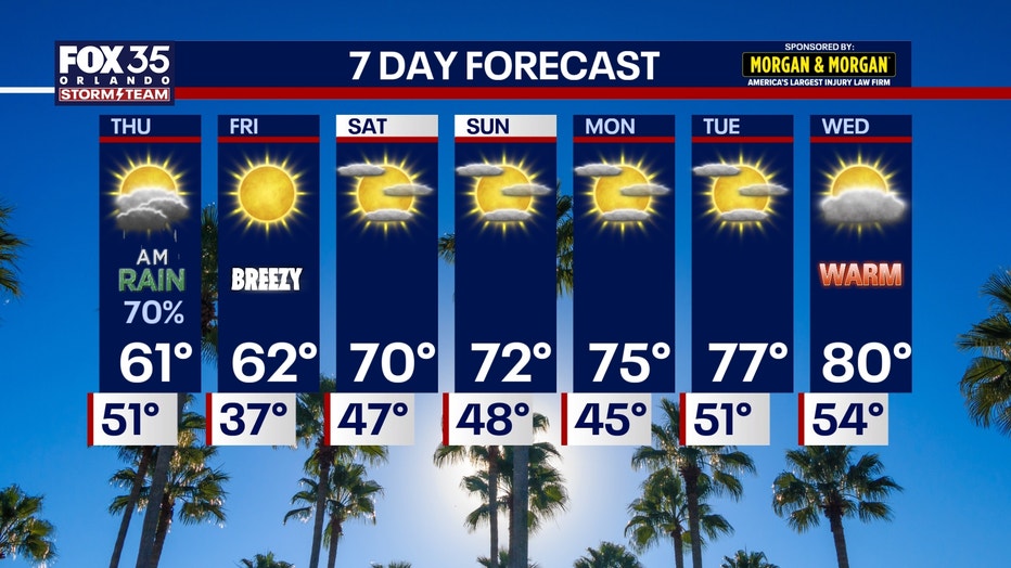 FOX 35 Storm Team Senior Meteorologist Noah Bergren is tracking rain showers for Thursday morning with a big drop in temperature for Friday morning with gusty winds.