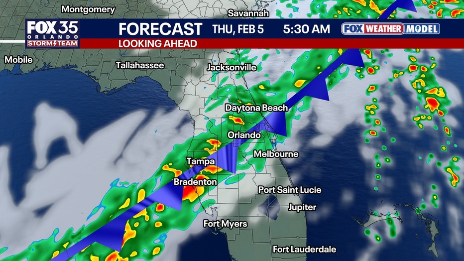 The morning commute in Orlando might be a bit slow tomorrow as the front lingers. The good news? No severe weather is in the cards—just steady, light rain.
