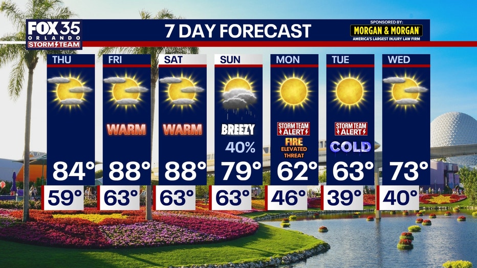 Orlando weather: Mild Wednesday night with temperatures warming up to 80s on Thursday