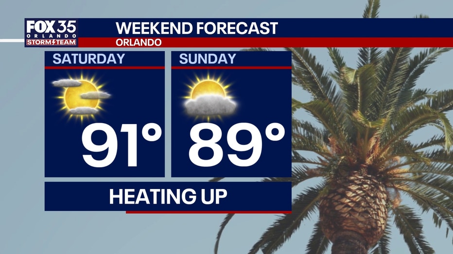For the weekend, we'll continue to heat things up – at least for Saturday. Highs will break into the low 90s for Saturday and upper 80s Sunday under partly to mostly sunny skies.