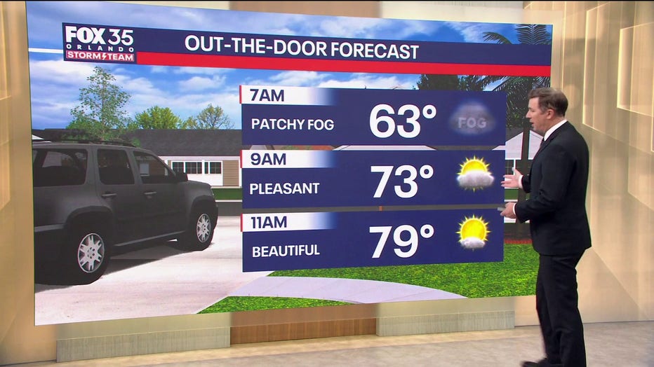 Looking ahead into the day, temperatures will reach 73 degrees by 9 a.m. and 79 degrees by 11 a.m. The forecast high for Orlando is 86 degrees.