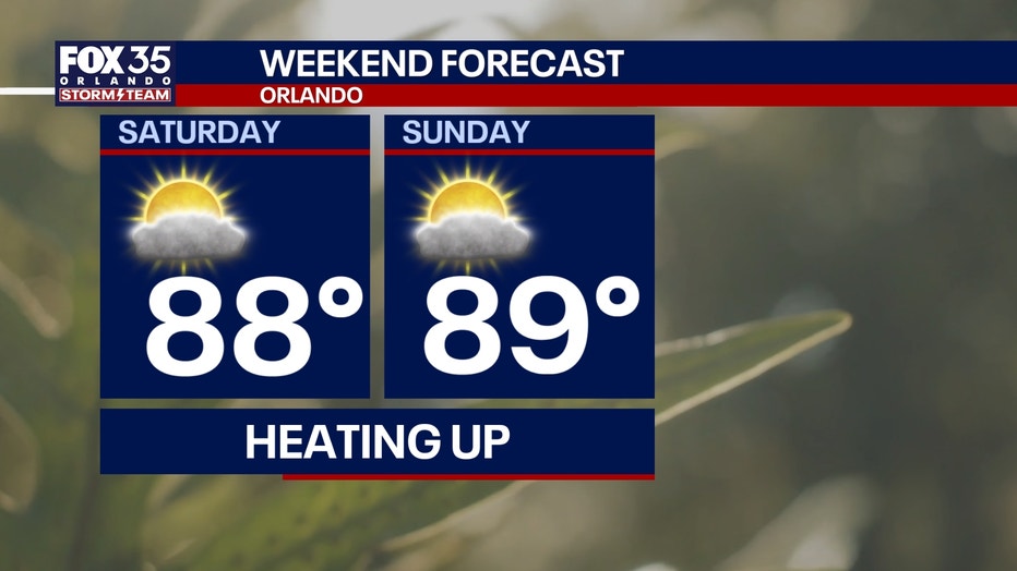 For the weekend, temperatures will heat up in a big way. Plan for highs in the upper 80s to near 90°.