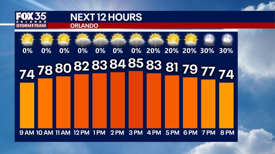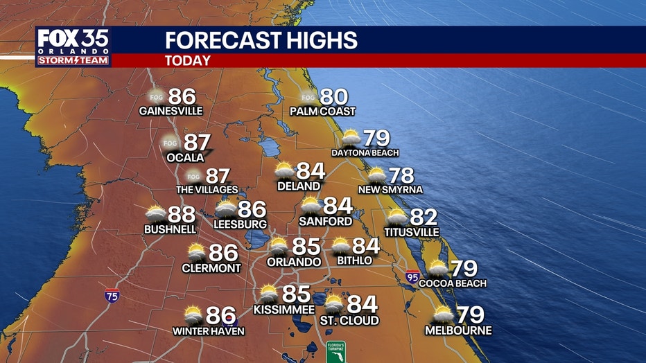 ORLANDO, Fla. - Fog continues to lift across Central Florida. A Dense Fog Advisory is in place for Marion County until 9am. Once any lingering fog clears, we'll be left with mostly sunny skies. Clouds will gradually increase throughout today, leaving us under a partly cloudy sky.