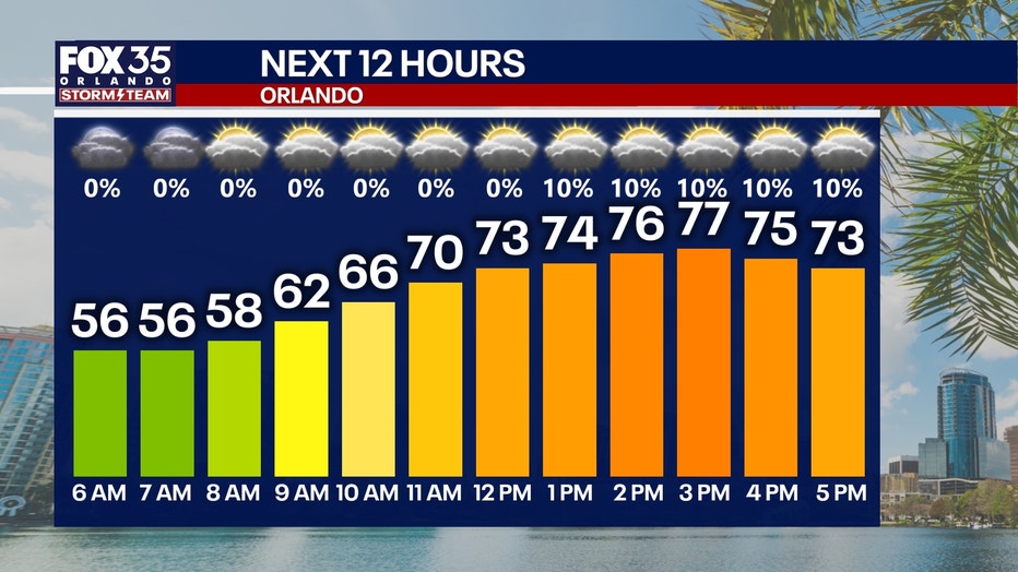 ORLANDO, Fla. - Partly to mostly cloudy skies are on the way for today. Temperatures will be quite mild, as highs climb into the low 70s near the coast and mid to upper 70s for inland areas.
