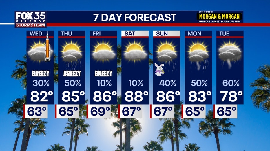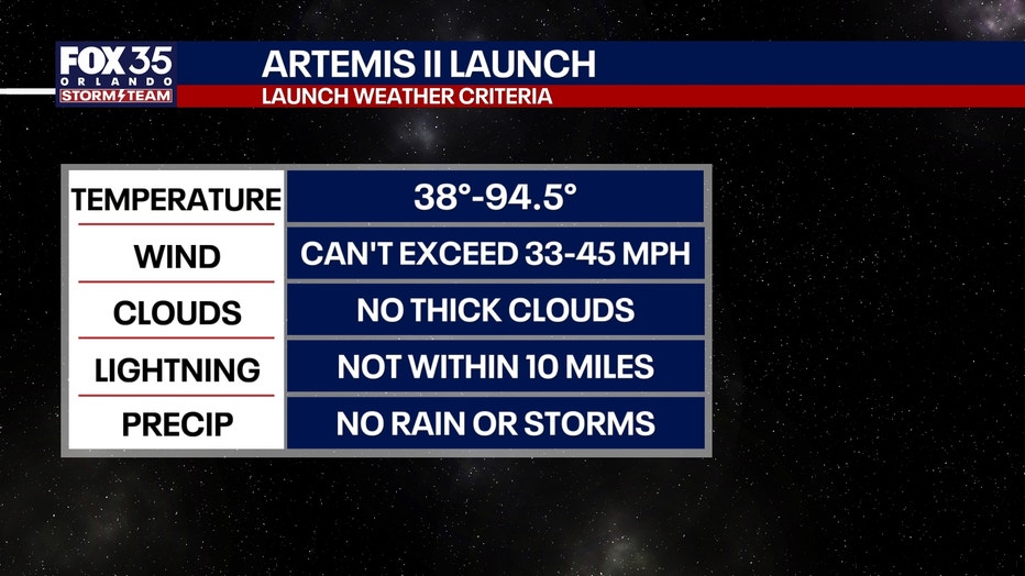 FOX 35 Storm Team Senior Meteorologist Noah Bergren is tracking showers and clouds for the Artemis launch Wednesday.