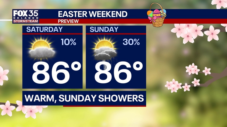 For Easter Sunday, the data points to a dry morning for Easter egg hunting plans. However, building moisture out ahead of a cold front next week is set to bring the chance of scattered showers on Sunday afternoon.