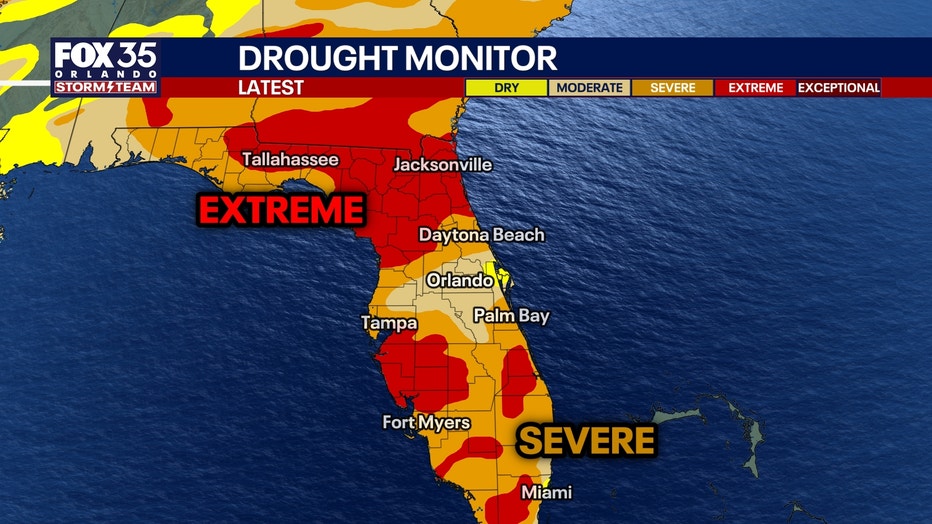 FOX 35 Storm Team Senior Meteorologist Noah Bergren is tracking extreme drought across Florida and some rain showers late day on Sunday at Daytona.