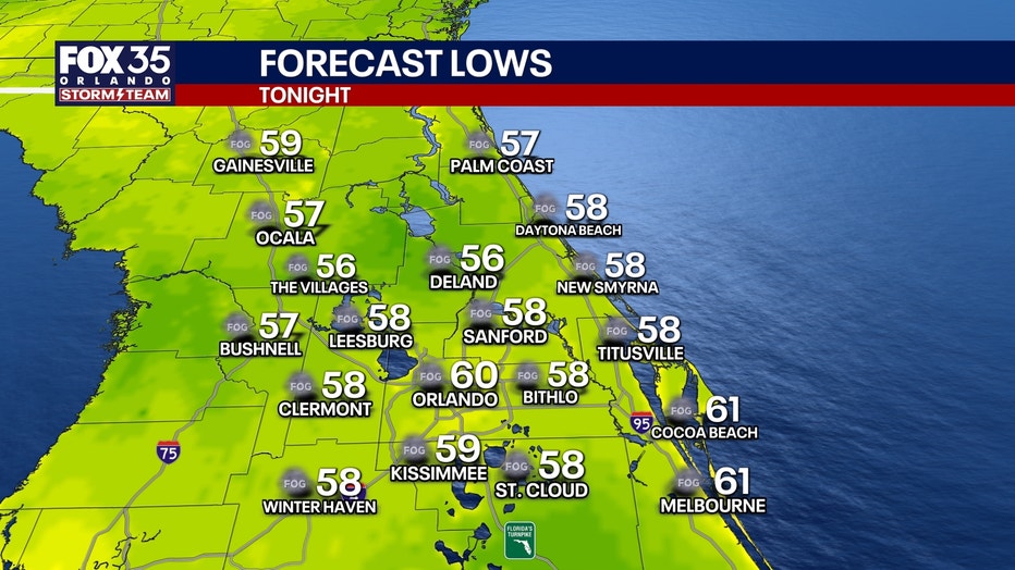 ORLANDO, Fla. - A few passing clouds are expected this evening and overnight, with patchy fog possible again.