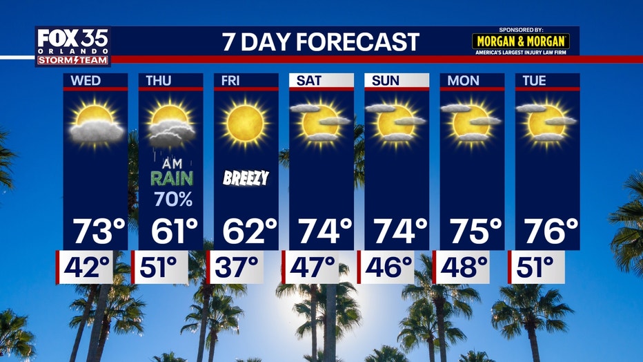 ORLANDO, Fla. - Clear skies are expected tonight as the recent cold spell eases across Florida.