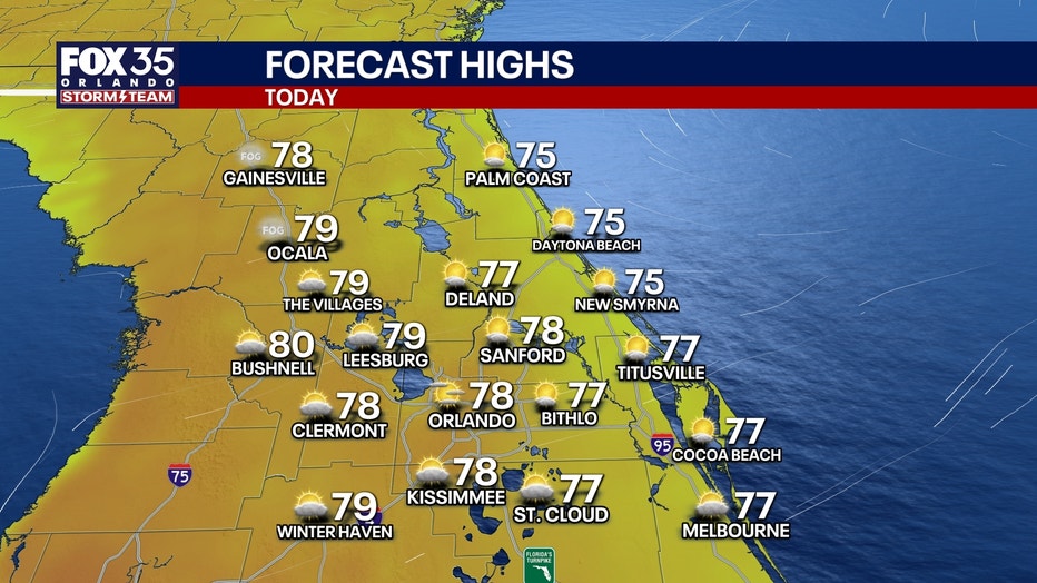 ORLANDO, Fla. - Temperatures will continue on our warming trend today with highs, once again, nearing 80 degrees.