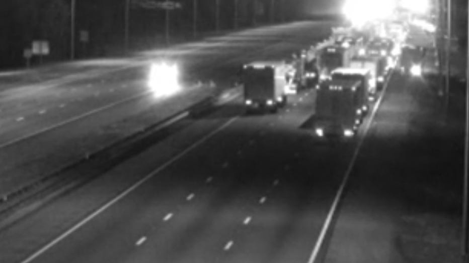 A 55-year-old woman died early Monday after colliding with a crashed vehicle on Interstate 95 in Flagler County, according to Florida Highway Patrol. [Credit: FDOT]