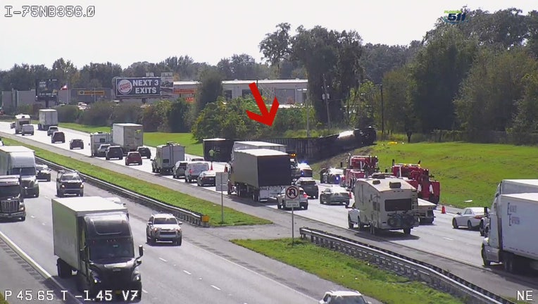 MARION COUNTY, Fla. - Drivers can expect delays on Interstate 75 after a semi hauling cases of antifreeze overturned Tuesday, according to the Florida Highway Patrol.