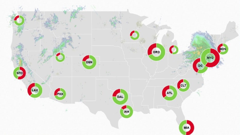 FlightAware's "Misery Map" showed significant delays in New York City, Washington D.C. and Boston.