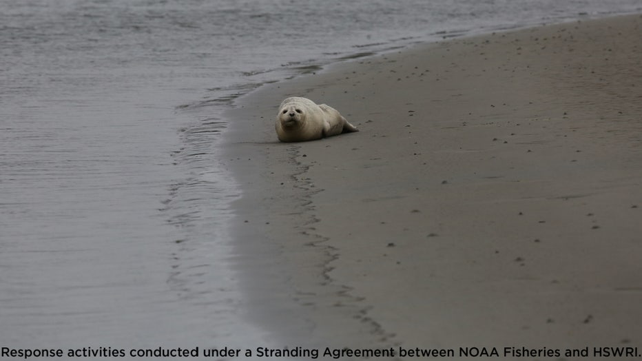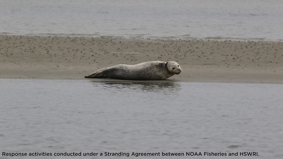 The team evaluated the Harbor seal's condition and took photos before the seal re-entered the water, the research institute told FOX 35. The Marine Discovery Center also confirmed this sighting.