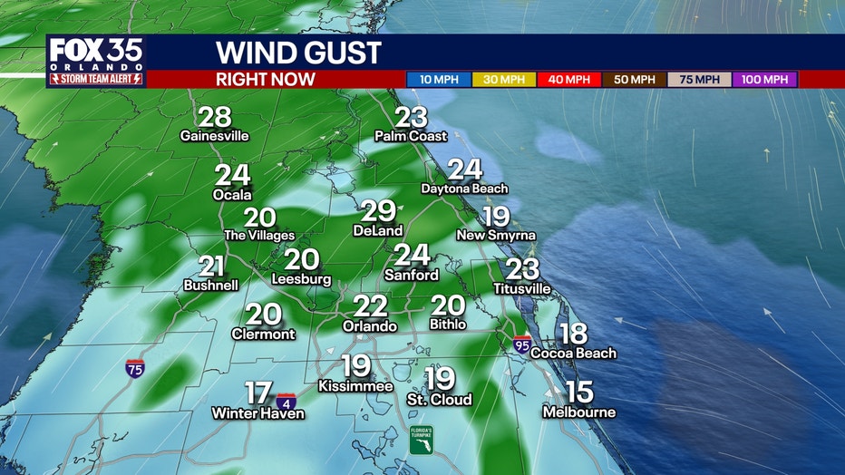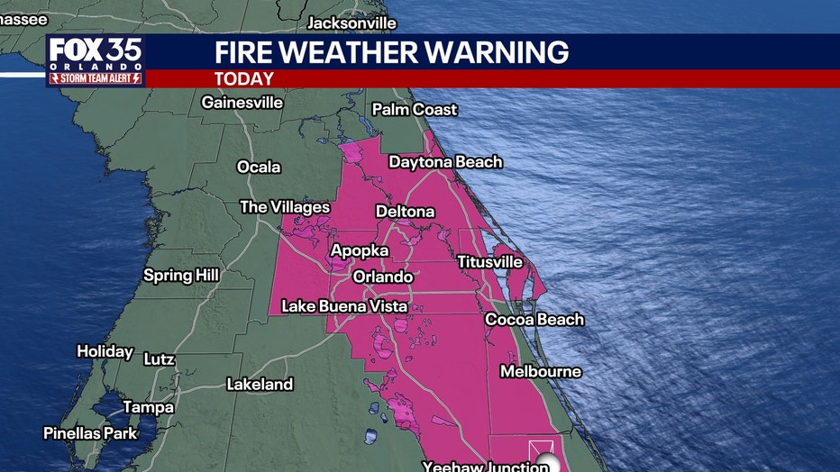 Fire threat warnings exist in Brevard, Indian River, Lake, Orange, Osceola, Seminole, and Volusia counties.