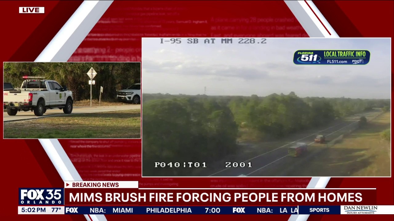 Brush fires have sparked in Brevard County, with active blazes reported in Melbourne near Wickham Road and Holy Trinity Drive, and in Mims near Blounts Ridge Road and Rose Marie Place, where evacuations are underway.