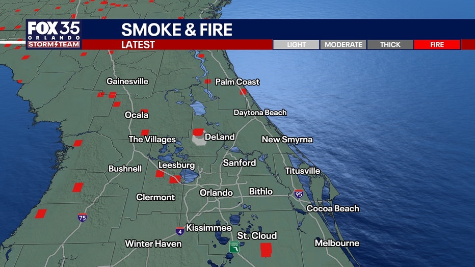 Smoke from the 1,026-acrea fire north of Altoona has drifted into the Orlando area, producing hazy skies north and northwest of the metro area across Lake, Seminole, and Volusia counties.