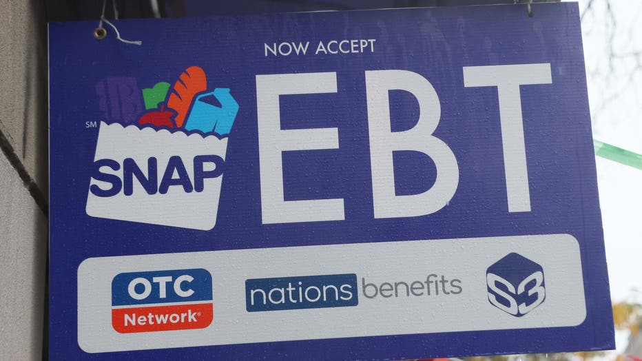 An EBT sign is displayed on the window of a grocery store on October 30, 2025 in the Flatbush neighborhood of the Brooklyn borough in New York City. (Photo by Michael M. Santiago/Getty Images)