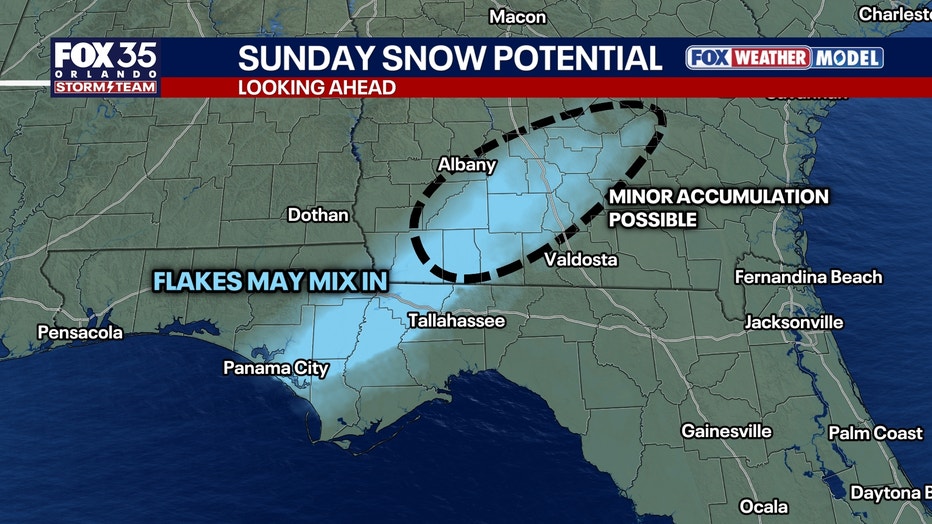 And some of that moisture, may fall as snow! It looks like the chances of snow mixing or changing are going to be higher in Georgia than in north Florida on Sunday.