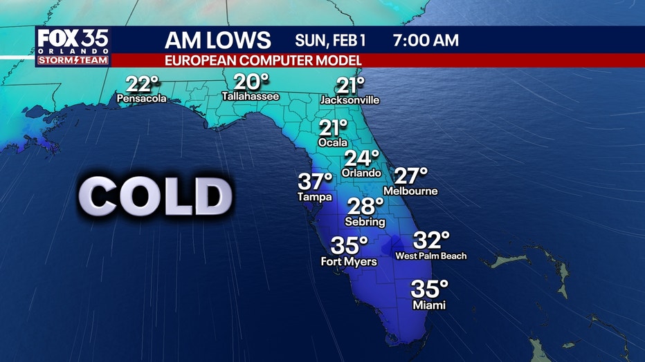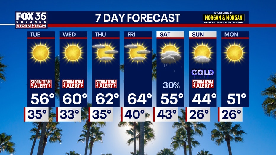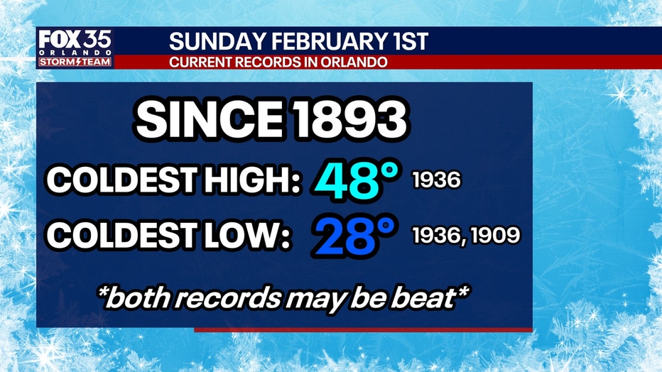 ORLANDO, Fla. - A FOX 35 Storm Team alert is active this coming Sunday for potentially record cold.