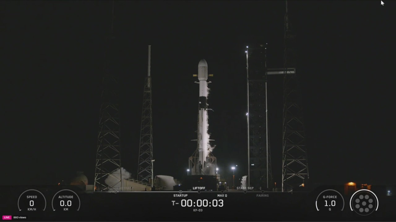 CAPE CANAVERAL, Fla. - SpaceX launched a Falcon 9 rocket Monday evening carrying Amazon's third Kuiper Falcon launch (KF-03) as part of the larger Project Kuiper mission.