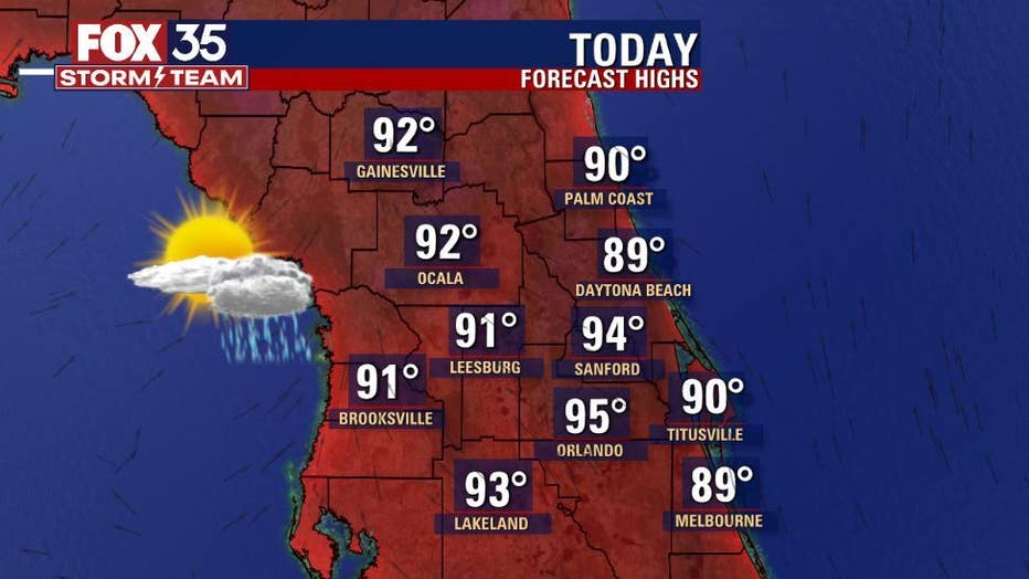 ORLANDO, Fla. - WHAT IS THE WEATHER FORECAST FOR TODAY AROUND ORLANDO?
