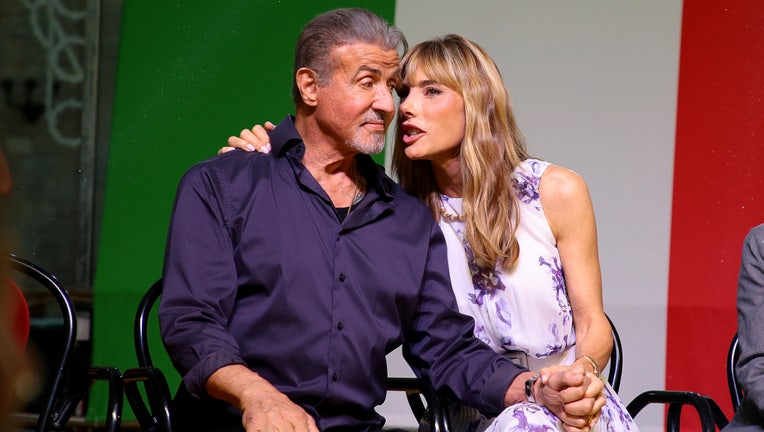 GIOIA DEL COLLE, ITALY - SEPTEMBER 06: Sylvester Stallone and his wife Jennifer Flavin during the awards ceremony attends a ceremony for the honorary citizenship to actor Sylvester Stallone on September 06, 2023 in Gioia del Colle, Italy. (Photo by D