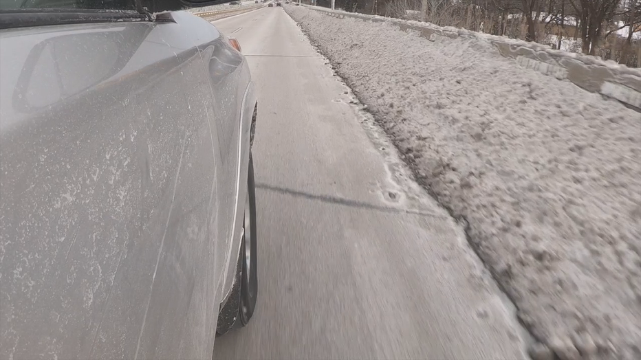 WAUWATOSA, Wis. - The Milwaukee County Sheriff's Office released new video of the moment a pick-up truck loses control in the Zoo Interchange, uses a snowbank as a ramp off the bridge and falls 70 feet down onto westbound I-94.