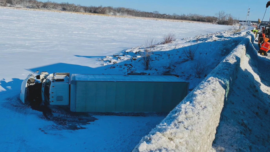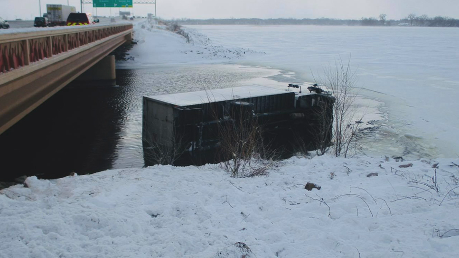 The Wisconsin State Patrol shared pictures of a truck that also left the highway... this time crashing off southbound I-41 and into Lake Butte des Morts.